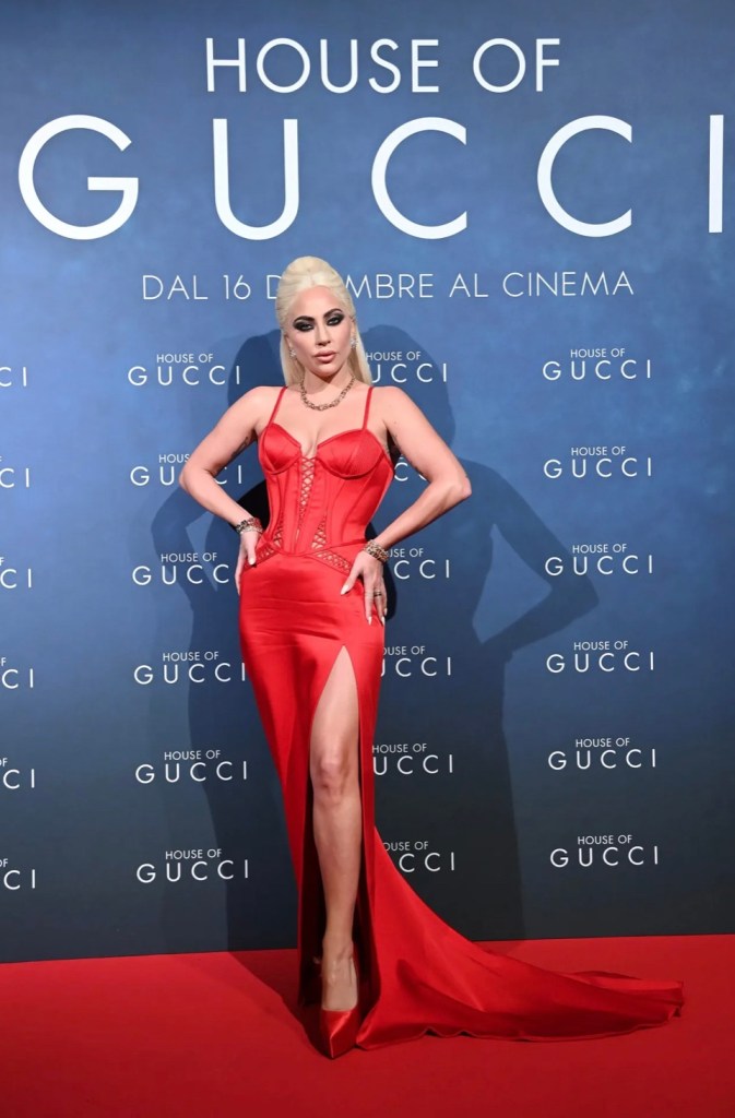 Кохання, вбивство, гроші і мода. Все це про новий фільм Рідлі Скотта «Дім Gucci», який розповідає про неабияку драму у знаменитій італійській родині. Костюми у картині грають не останню роль — Патриція Реджянні, чий образ на екрані втілила Леді Гага, славилася великим гардеробом та любила виглядати ефектно. Мабуть, саме з цієї причини актриса і співачка, яка і без того розділяє пристрасть до епатажу, вирішила під час промо-туру показати все на що здатна. У хід пішли розкішні gowns, усипані гліттером, спокусливі корсетні сукні і, звичайно, монограма бренду та улюблені ботильйони Леді Гаги на високій платформі.
